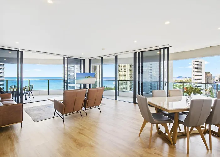 広々とした100m²のゴールドコーストOracle 2 1907アパートメントはテラスがあり、オアシス ショッピングセンターから歩いて5分の場所に位置しています。 海辺のアパートからリプリーズ・ビリーブ・イット・オア・ノット!すぐ近くで、プラッテン・パークから900メートルです。